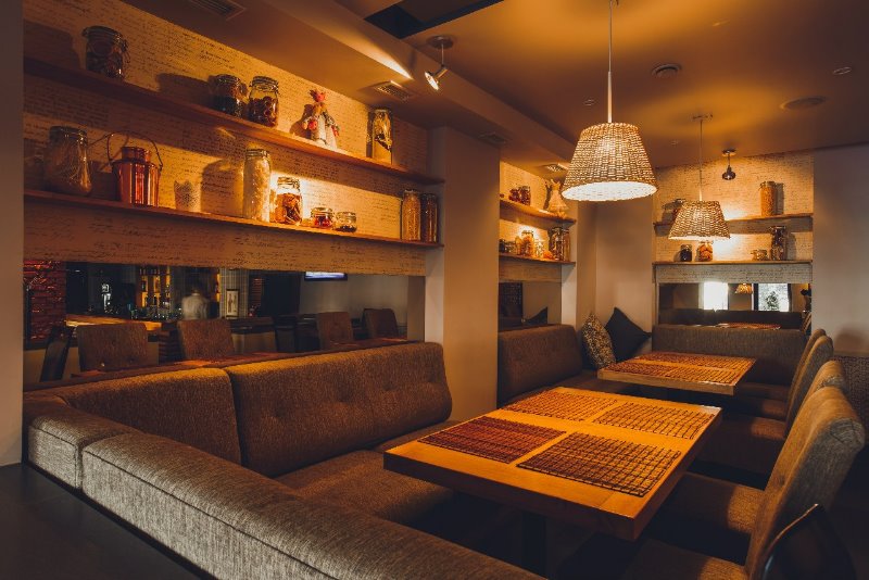 располагает к долгим посиделкам – приглушённый мягкий свет, тёплые