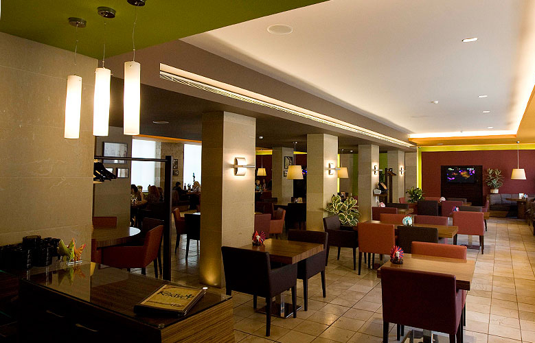 Интерьер кафе выполнен ливанским дизайнером. Камень, мебель,